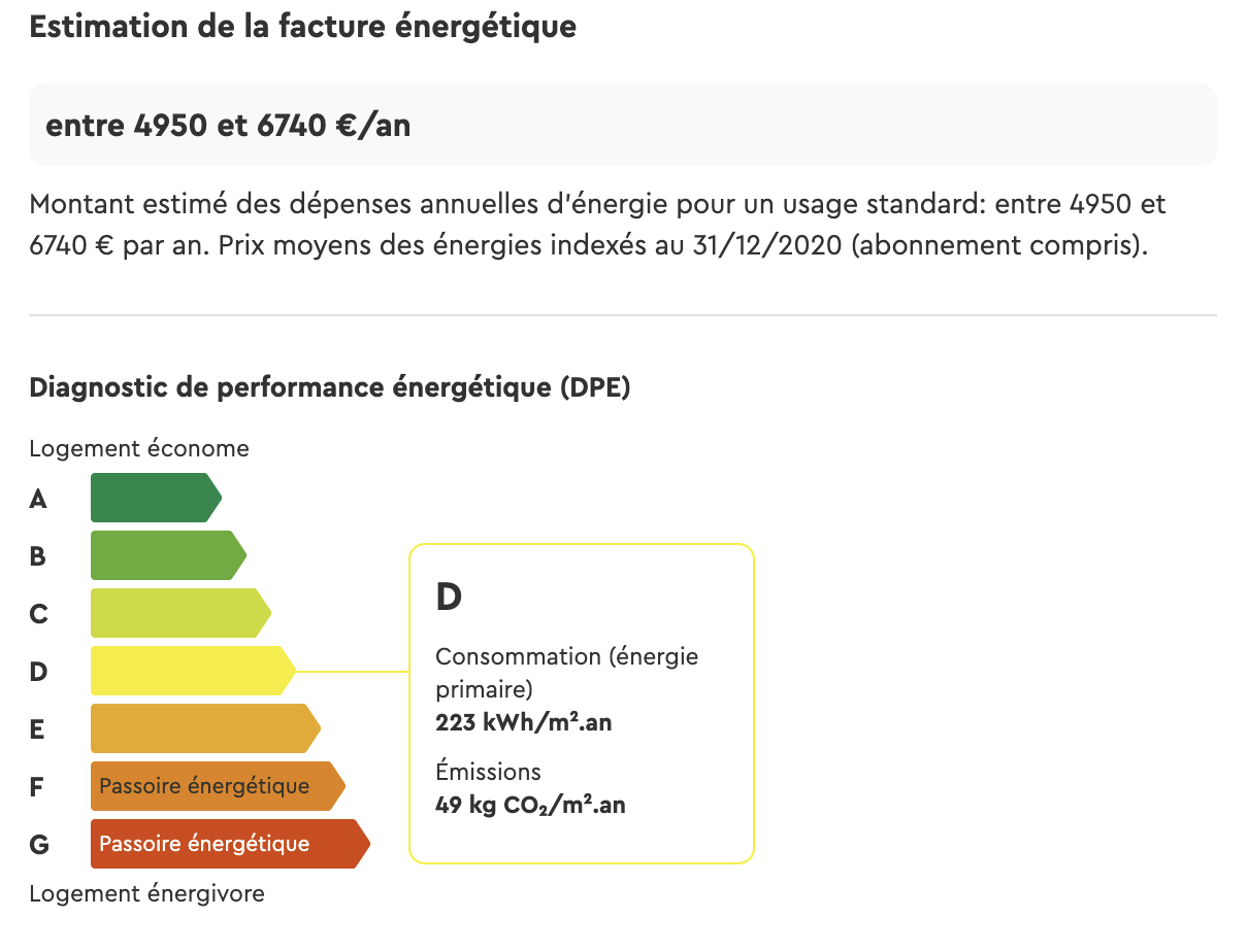 DPE réalisé le 26 mars 2025, classe d’énergie : D et GES : D. Montant estimé des dépenses annuelles d’énergie pour un usage standard entre 4950 € et 6740 €. Les informations sur les risques auxquels ce bien est exposé sont disponibles sur le site Géorisques http://www.georisques.gouv.fr