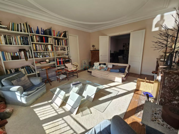 Le rez-de-chaussée sous ses 3 m de hauteur de plafond, se compose d’une vaste entrée desservant un double espace de réception lumineux de 50m². Le couloir dessert une grande cuisine indépendante, 1 vaste bureau ou chambre et 2 chambres dont une avec une salle d’eau.